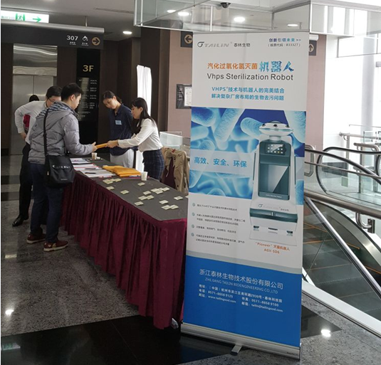 会议在台大医院国际会议中心顺利召开,来自台湾制药,疾控,政府等相关单位120多位参会人员聆听了夏总和赵振波经理分享的关于过氧化氢灭菌技术,及USP40 1229.11章气相灭菌法解读、汽化过氧化氢灭菌技术的应用和案例分享、过氧化氢灭菌程序验证方案以及最低风险的无菌检测解决方案。在现场得到了热烈的反响,参会人员对过氧化氢技术有了系统性地了解,为过氧化氢发生器的在台推广奠定扎实基础。